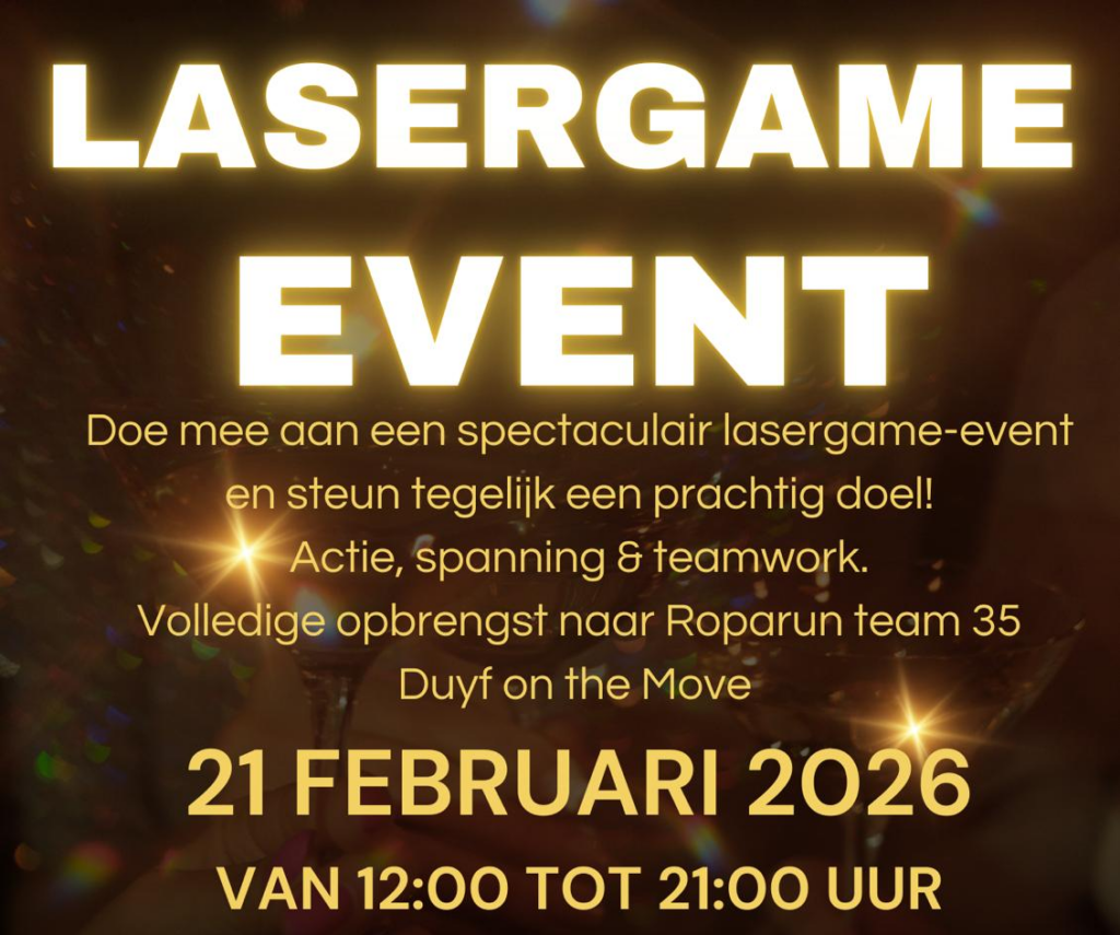 Op 21 februari van 12.00-21.00 uur organiseert Roparun team 35 Duyf on the Move een Lasergame Event.